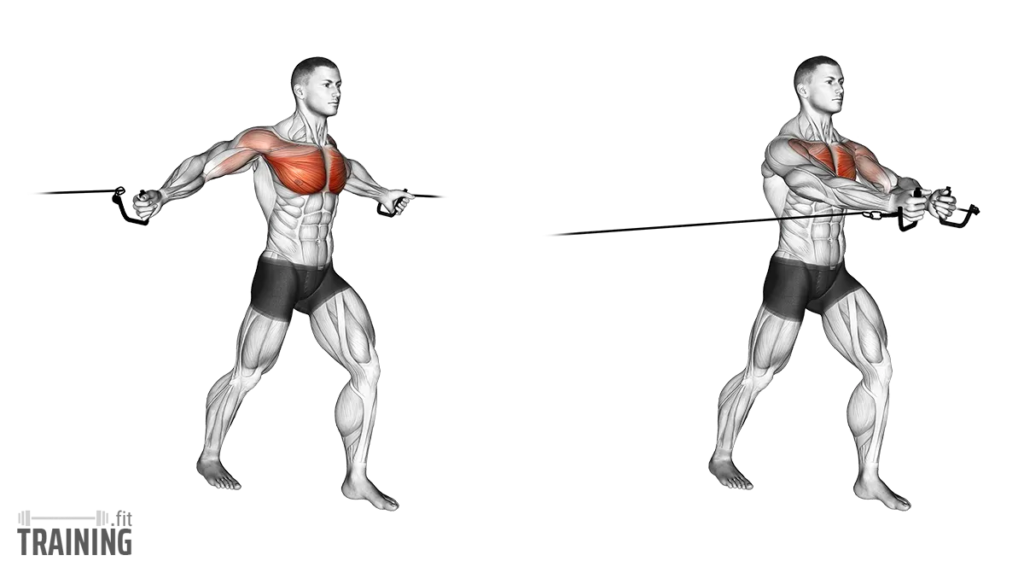 Cable flys offer a varied angle that effectively works the inner chest. Using a dual cable machine, stand in the center, grab the cables, and pull them together in front of your chest, feeling the stretch in your pectorals. Perform 3 sets of 10-12 reps for maximum impact.